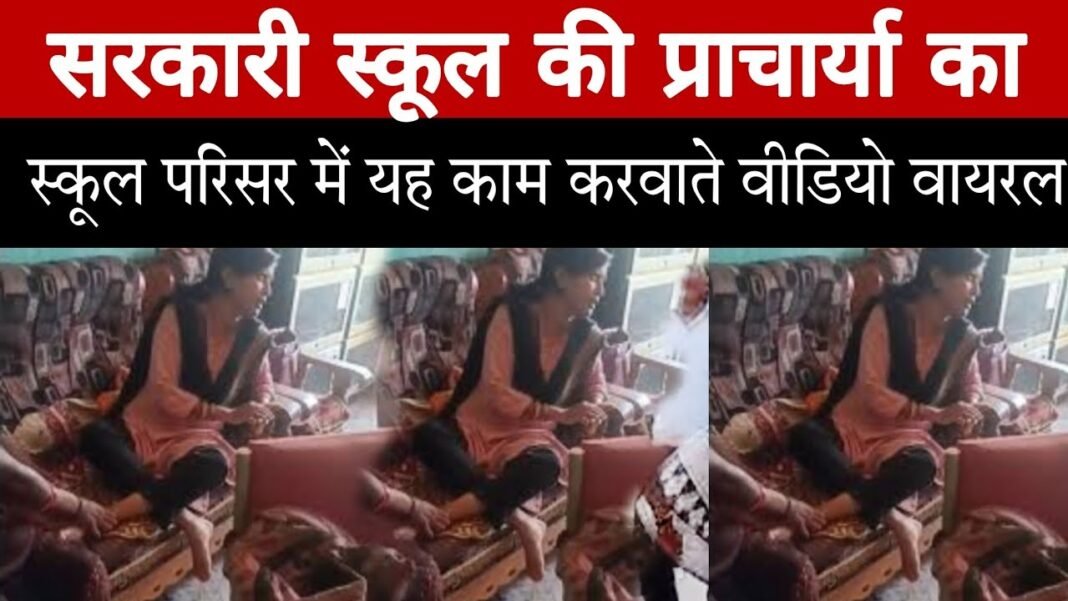 मध्य प्रदेश के विदिशा जिले के लटेरी के एक सरकारी स्कूल का वीडियो सोशल मीडिया पर जमकर वायरल हो रहा है। सामने आए वीडियो में स्कूल की महिला प्राचार्य अपने ही स्कूल की महिला प्यून से अपने पैर दबवाती नजर आ रही है। मामला लटेरी के शासकीय मॉडल उच्चतर माध्यमिक स्कूल का है। वायरल वीडियो में दावा किया जा रहा है की खुशबू मंदोरिया स्कूल परिसर के प्रिंसिपल ऑफिस में सोफे पर बैठकर स्कूल में सफाई कर्मी महिला से पैर दबवा रही है मामले में प्राचार्य खुशबू मंडोरिया का कहना है कि स्कूल के टॉयलेट में वे फिसलकर गिर गई थी। जिसकी वजह से उनके पैर में मोच आ गई थी। तब महिला प्यून ने मेरी मदद करने के लिए बाम लगाई थी, ताकि थोड़ा दर्द से आराम मिल सके। इस दौरान किसी ने उनका वीडियो बनाकर वायरल कर दिया है।