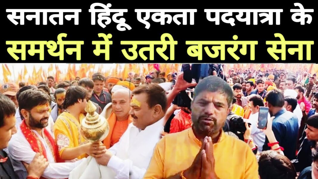 राष्ट्रीय अध्यक्ष रणवीर पटेरिया और राष्ट्रीय संगठन महामंत्री रामशंकर मिश्रा के नेतृत्व में भारत को हिंदू राष्ट्र बनाने एवं गौ माता को राष्ट्र माता घोषित करने के लिए बजरंग सेना सनातन हिंदू एकता पदयात्रा का समर्थन करते हुए बागेश्वर धाम के पीठाधीश्वर आनंद विभूषित श्री धीरेंद्र शास्त्री के समर्थन में कार्यकर्ता एवं पदाधिकारियों के साथ-साथ पदयात्रा कर रही है। इसी कड़ी में बजरंग सेना के दिल्ली प्रदेश अध्यक्ष भूपेंद्र सिंह भी अपनी टीम के साथ पहुंचे और महाराज जी के साथ 15 किलोमीटर की यात्रा की, बजरंग सेना के राष्ट्रीय संगठन महामंत्री ने चर्चा के दौरान बताया कि जब हिंदुस्तान का बटवारा हुआ था तो मुस्लिम समाज के लिए पाकिस्तान बनाया गया और मुस्लिम बाहुल्य पाकिस्तान में हिंदुओं की संख्या घटती गई कश्मीरी पंडितों को विस्थापित कर दिया गया और देश में जहां भी मुसलमानों की स्थिति अच्छी है वहां हिंदू पलायन करने की कगार पर है इसलिए आज के परिवेश में हिंदू राष्ट्र की स्थापना बहुत ही आवश्यक है।