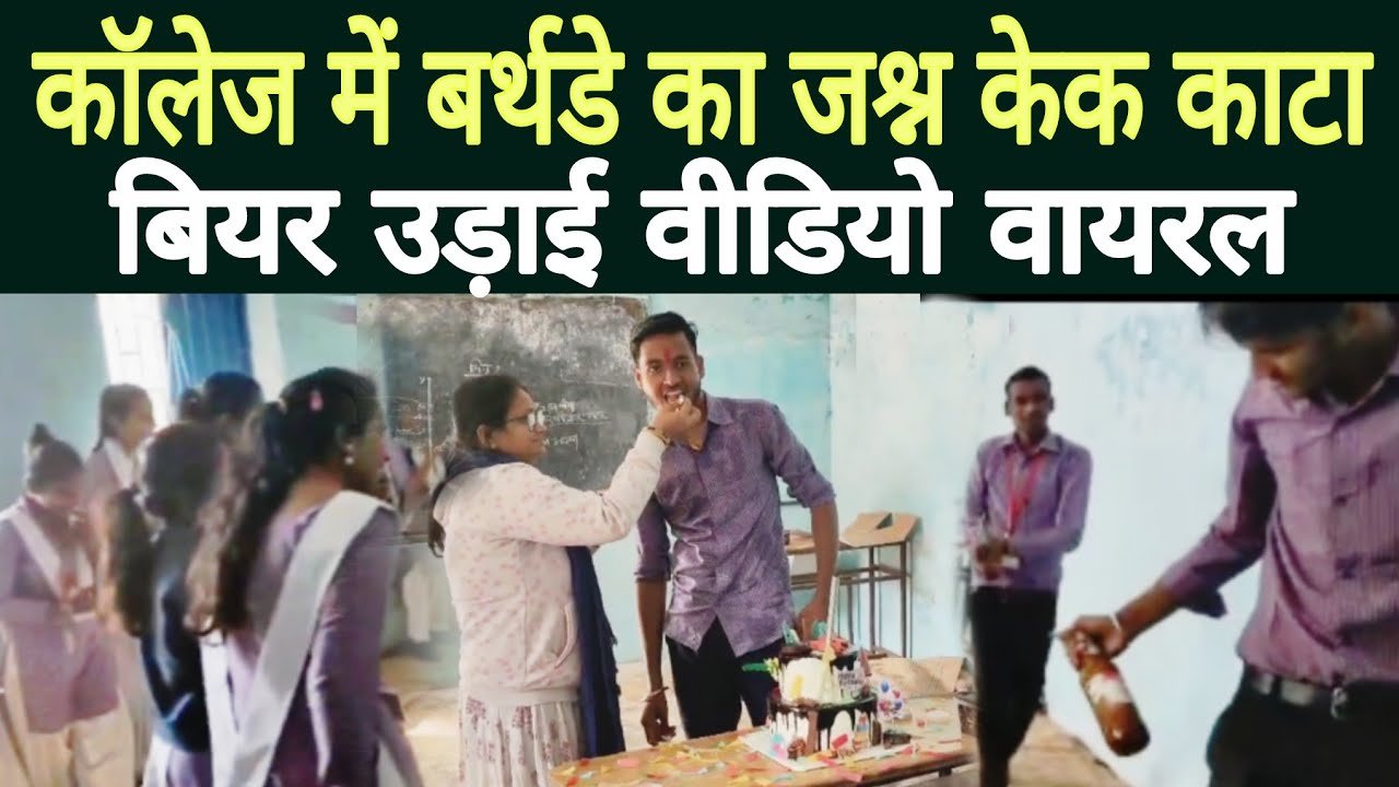 मऊगंज जिले के शासकीय महाविद्यालय हनुमना के क्लास रूम में छात्रों ने जमकर बर्थडे पार्टी का जश्न मनाया। इस जश्न में छात्र छात्राओं के साथ महिला अथिति विद्वान भी शामिल रही। हद तो तब हो गई जब छात्रों ने महिला प्रोफेसर की मौजूदगी में बियर की बोतले खोलकर शैंपेन की तरह शेक किया और केक काटा। जिसका वीडियो सोशल मीडिया में अब जमकर वायरल हो रहा है।