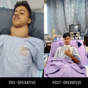रीवा शहर के बिछिया निवासी 16 वर्षीय साहिल खान जन्मजात थायरॉयड की गंभीर बीमारी से पीड़ित थे। गले और छाती तक फैली लगभग 1 किलो वज़नी थायराइड ग्रंथि के कारण वे सामान्य जीवन जीने में असमर्थ हो गए थे। परिवार इलाज के लिए कई बड़े अस्पतालों के चक्कर लगाता रहा, लेकिन कहीं से राहत नही मिली। किसी ने भर्ती तक नहीं किया, तो किसी ने इलाज से साफ इनकार कर दिया। हालात इतने गंभीर हो गए कि परिवार की सारी उम्मीदें टूटने लगीं।