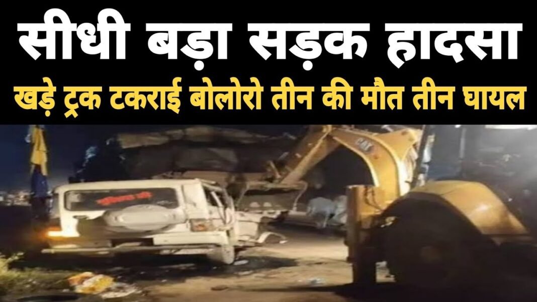 सीधी में बीते गुरुवार को दर्दनाक हादसा हो गया। जहां तेज रफ्तार बोलेरो एक खड़े ट्रक से टकरा गई, इस हादसे में तीन लोगों की मौत हो गई, जबकि तीन लोग घायल हुए है। यह घटना सीधी-सिंगरौली नेशनल हाईवे पर हुई है। जहां शुक्रवार को मुख्यमंत्री डाक्टर मोहन यादव के कार्यक्रम के लिए तैयारियां चल रही थी, ट्रक में टेंट का सामान रखा था। उसी दौरान बोलेरो उससे आकर टकरा गई और यह हादसा हो गया यह हादसा बहरी थाना क्षेत्र के सीधी सिंगरौली नेशनल हाईवे 39 में गुरुवार की रात करीब साढ़े सात बजे हुआ है।